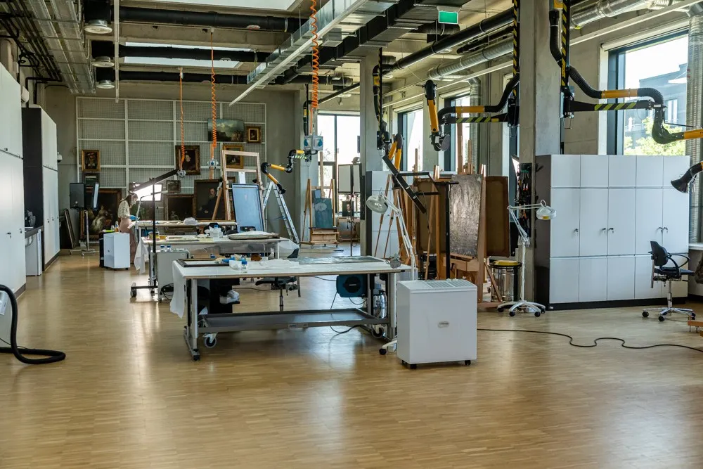 A festőrestaurátor műhely akkora, mint egy nagy csarnok, 300 négyzetméteres.