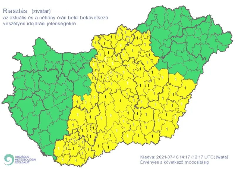 Elsőfokú, citromsárga riasztást adtak ki a zivatarok miatt. Elsősorban az ország déli és keleti felén pattanhatnak ki nagyobb számban vihargócok.