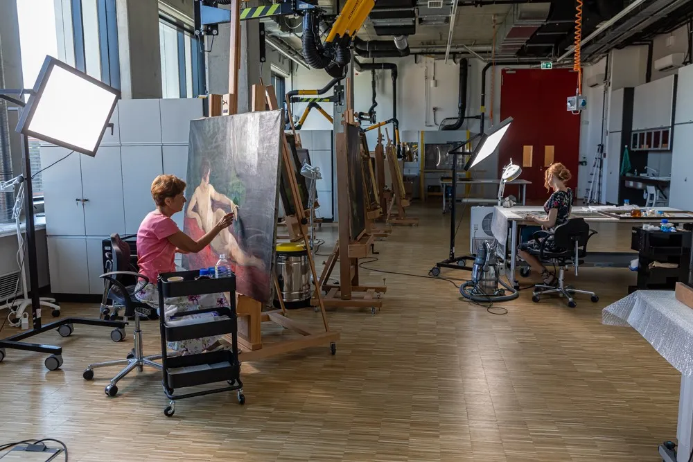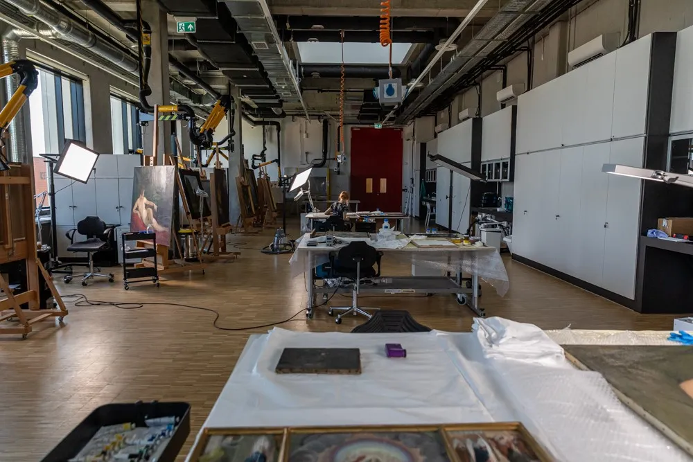 A festőrestaurátor műhely akkora, mint egy nagy csarnok: 300 négyzetméteres.