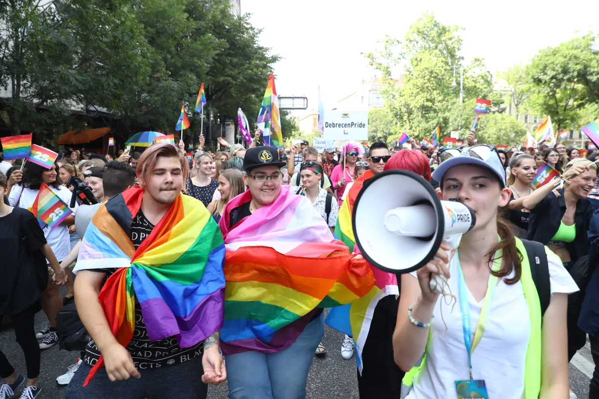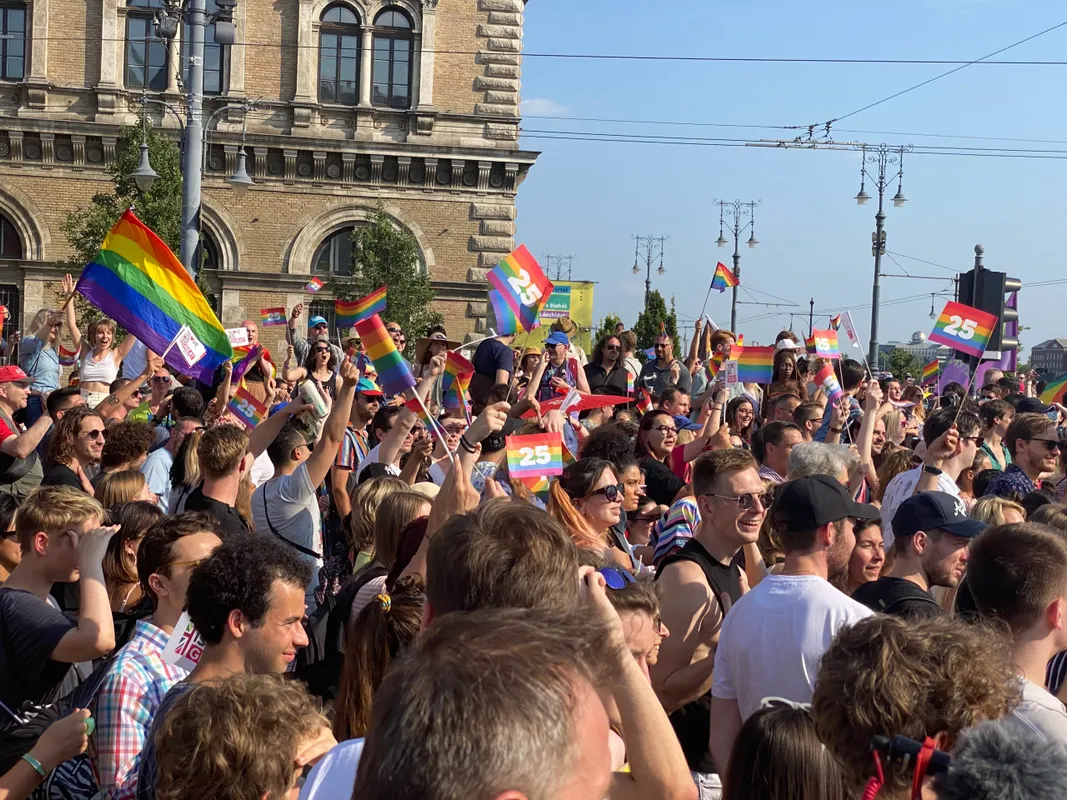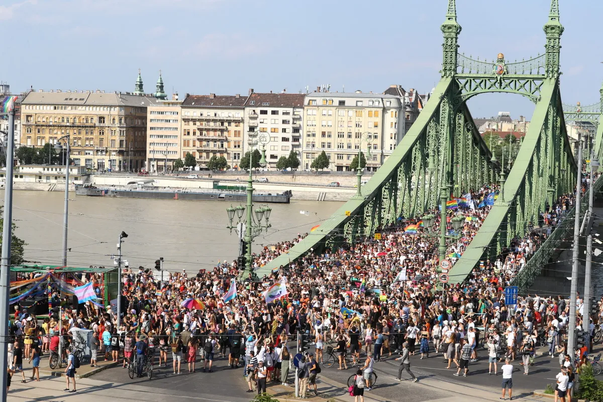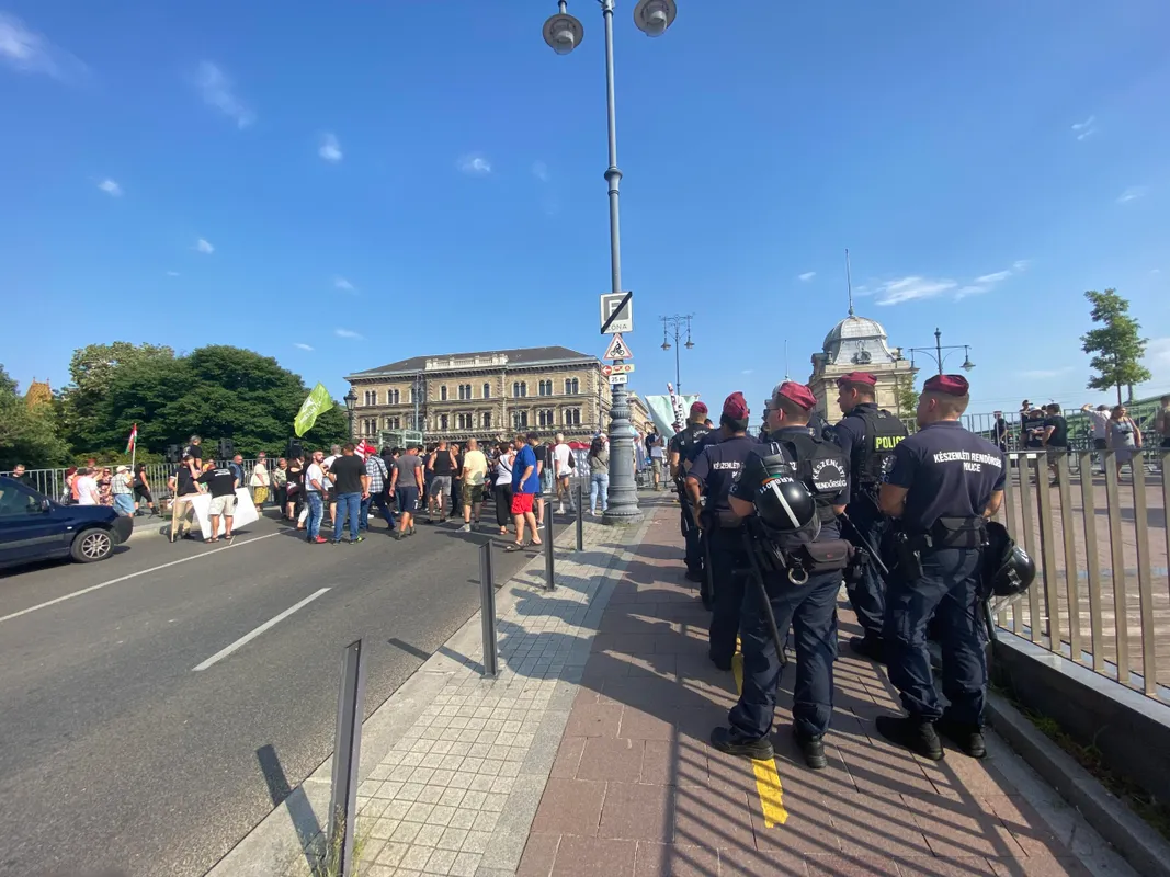 A rendőrség nagy erőkkel biztosítja a 2021-es Budapest Pride-ot. Tüntetők maroknyi csapata bekiabálásokkal próbálta megzavarni a felvonulást.