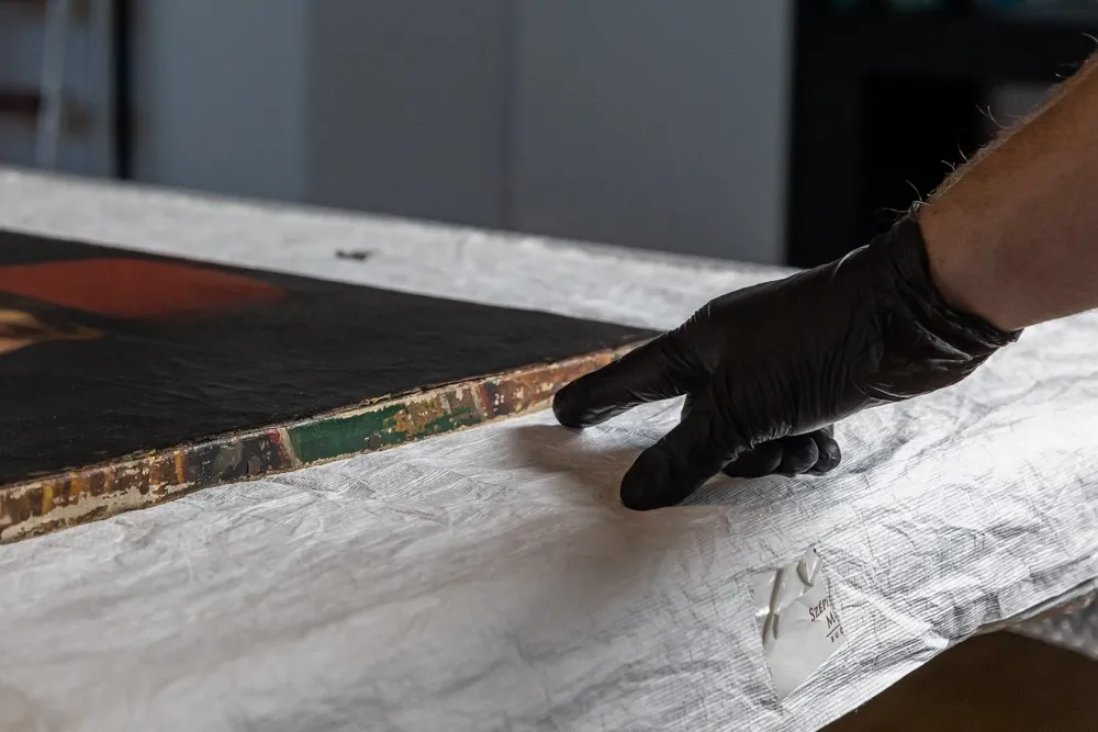 Miután óvatosan kivették a képet, a restaurátor csipesszel felemelte a vásznat, és ekkor nyilvánvalóvá vált, hogy alatta van egy másik festmény! A szélen zöld festék nyomai látszottak, s mivel a felső kép teljesen más színvilágú, egyértelmű, hogy egy újabb festményre bukkantak.