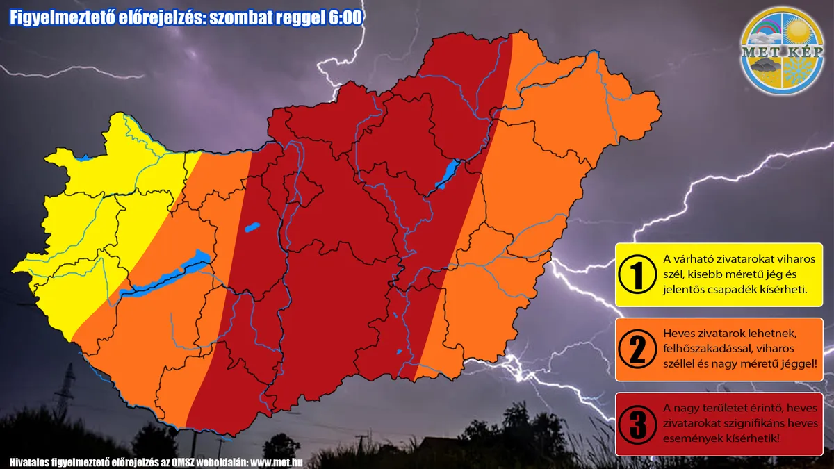 Tatabányától északnyugatra, illetve nyugaton is egy szupercella alakult ki. Útját jégeső, viharos szél kísérheti. A figyelmeztetés szerint károkozó viharok várhatók a következő órákban!