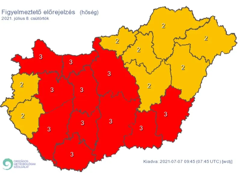 Harmadfokú veszélyjelzés lépett életbe csütörtökre és péntekre a fokozódó forróság miatt.
