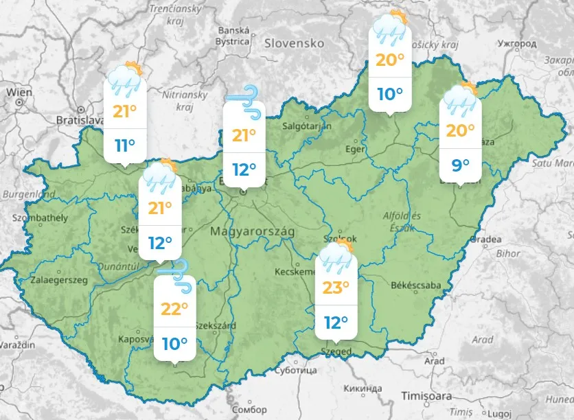 Kedden északnyugat felől gyakran erősen megnövekszik a felhőzet, és szórványosan várható zápor, zivatar. Megerősödik az északnyugat szél. A csúcsérték mindössze 21 fok körül alakul. Borús, szeles, igazi őszi idővel búcsúzik a nyár – írja a koponyeg.hu.