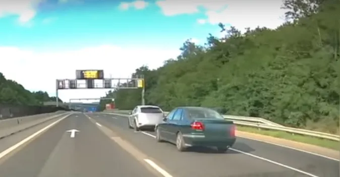 Egy zöld színű volvós előzésbe kezdett, ami a mögötte gyorsabban haladó fordosnak vélhetőleg nem tetszett. A sofőrnek valószínűleg még fékeznie is kellett, hogy elkerüljék a csattanást, de a java még csak most következett.