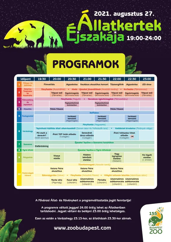 A részletes program az Állatkert honlapján, illetve közösségi média felületein érhető el. Jegyeket a helyszínen, illetve elővételben is lehet váltani.