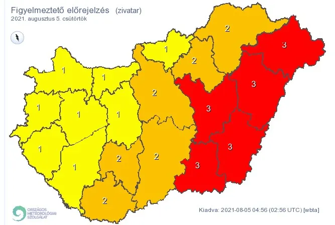 Kiadták a harmadfokú riasztást, úgy tűnik, csütörtökön sem lesz kegyes az időjárás! Nyugat, északnyugat felől zivatarokra kell számítani, amelyek napközben kelet, északkelet felé terjednek – közölte az Országos Meteorológiai Szolgálat.