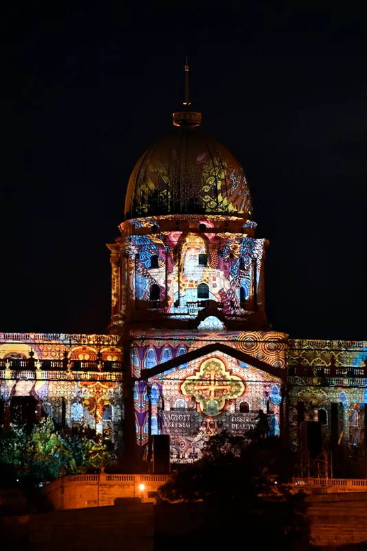 Minden este fél 9 és éjfél között a Budavári Palota Duna felőli oldalán egyedülálló fényfestés látható, amely az újjászületett Szent István-termet hirdeti augusztus 29-ig.