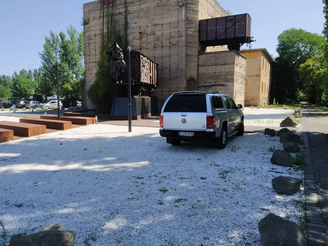 Tehát adott egy múzeum és egy emlékmű a Fék utcában, ami ennek a tragédiának állít emléket. Meg adott a szabad helyet kiszúró autós, aki odaparkol az emlékműre...