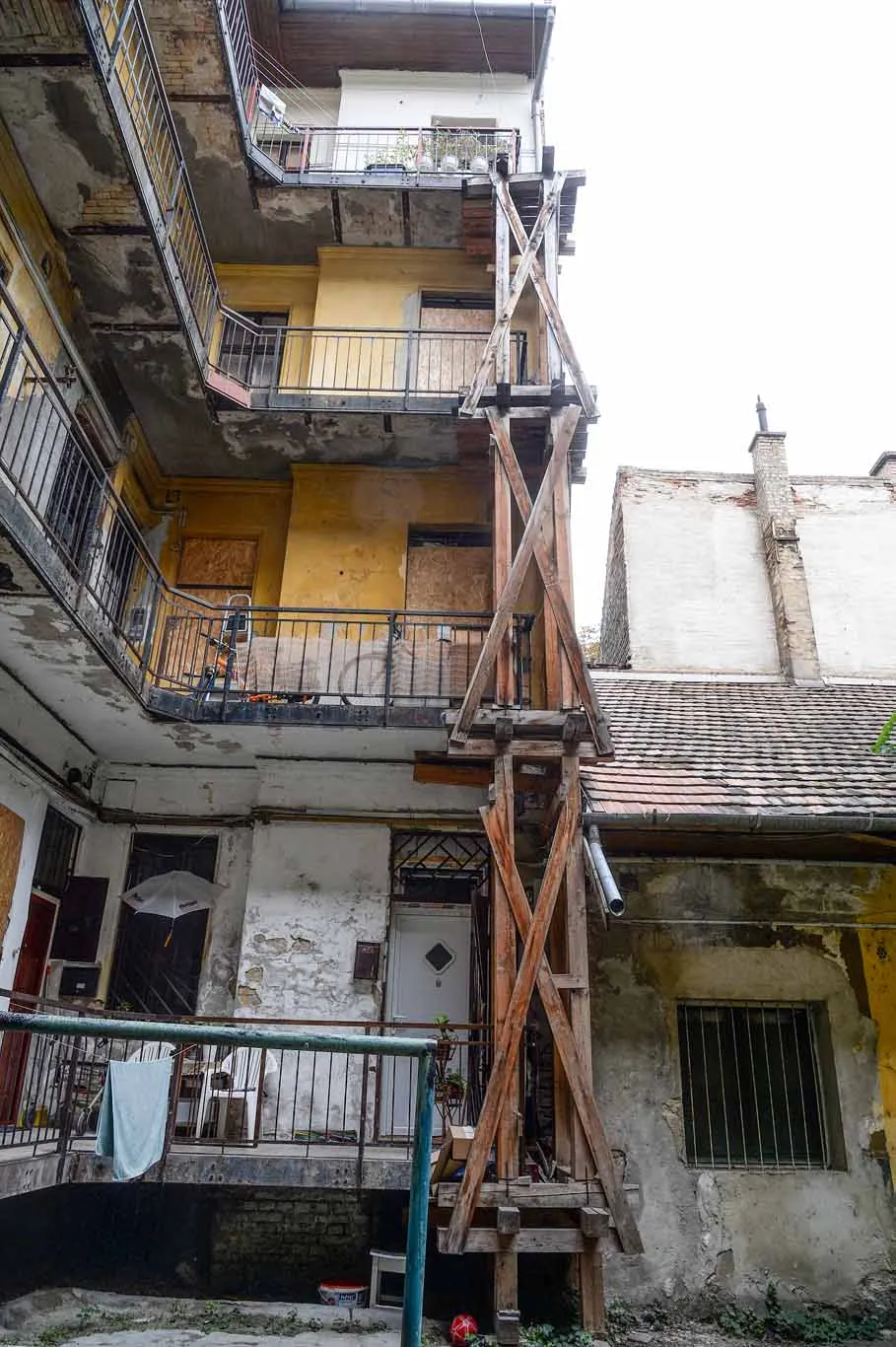 -Mi halálháznak nevezzük, a bérlők kiöregednek, meghalnak. Kispénzű és alacsony iskolázottságú emberek élnek itt. Olyanok, akiknek nincs esélyük elköltözni. 48 lakás van az épületben, de pillanatnyilag 24-ben laknak. Ahogy megürül egy lakás bedeszkázzák, mert rövid időn belül önkényes lakásfoglalók költöznek be az elhunytak helyére – mesélte Zoli, aki 15-20 éve él a rozoga épületben.