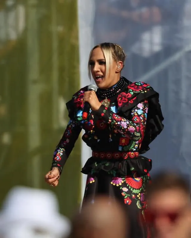 A szentmise előtt Szikora Róbert és Tóth Gabi is szórakoztatta a közönséget egy-egy, az alkalomra készült, átírt dallal. Gabi az új számát, az Az én szívem-et adta elő egy népies mintázatú Sugarbird ruhában, nyakában egy kis Jézust ölelő Mária-nyaklánccal.