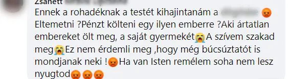 A gyilkos temetése azonban már most gyilkos indulatokat szül a legnagyobb közösségi oldalon. A legtöbben nemhogy a neki is kijáró végtisztességet nem adnák meg B. Zoltánnak, hanem olyan dolgokat tennének vele, ami egyszerűen leírhatatlan.