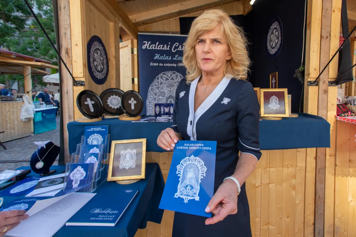 „Ma is varrjuk a korábbi, régi motívumokat, erre az alkalomra most kereszteket hoztunk, illetve Madonnát. Egy középméretű kereszt elkészítése körülbelül 25-30 munkaórát vesz igénybe” – mondta a Ripost-nak Szécsiné Rédei Éva, halasi csipkekészítő.
