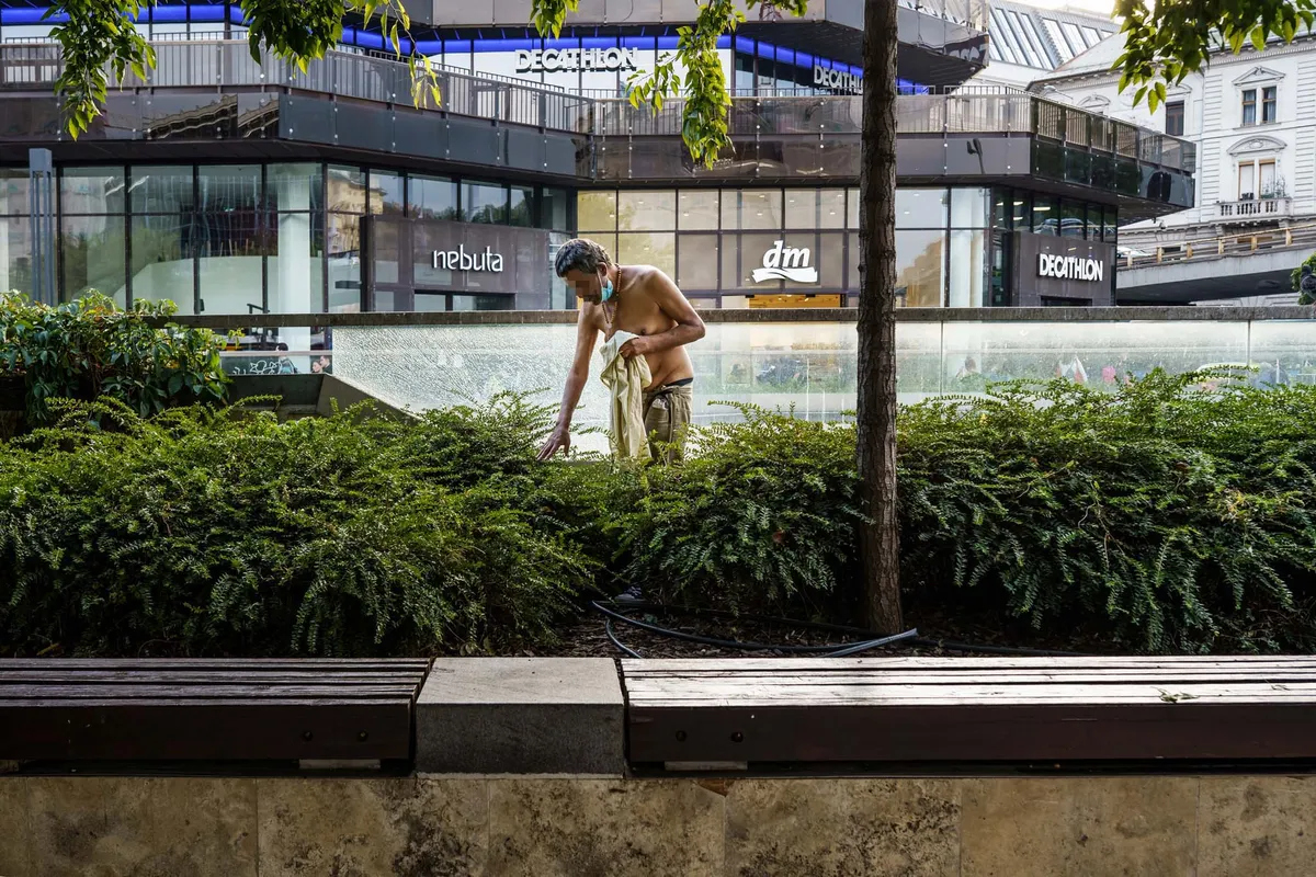 „Az előbb a saját szememmel láttam, amint az egyik hajléktalan nő álmából felébredve odakullog a nekik kikészített cipős adományokhoz, a magának tetszőt elveszi, felpróbálja, majd a régit bedobja a mögötte lévő zöld területre” – számolt be Feri, aki épp egy ismerősére várakozott.
