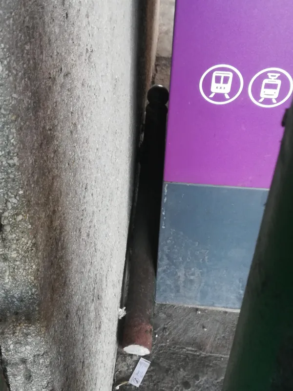 Szintén Zuglóban az egyik jegykiadó automata mögé egy kidőlt oszlopot támasztottak, ha már el nem viszik, legalább ne legyen útban.
