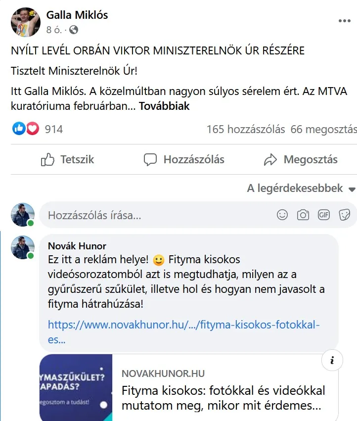 Megtrollkodta Galla Miklós nyílt levelét Novák Hunor. A gyermekorvos ráadásul nem elégedett meg azzal, hogy az eredeti poszthoz kommentelt, de az egészről képernyőfotót is készített, amit megosztott a saját Facebook-oldalán