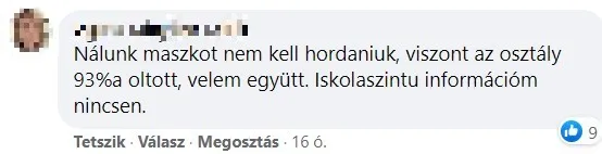 „Nálunk maszkot nem kell hordaniuk, viszont az osztály 93 %-a oltott, velem együtt. Iskolaszintű információm nincsen” – árulta el egy tanárnő.
