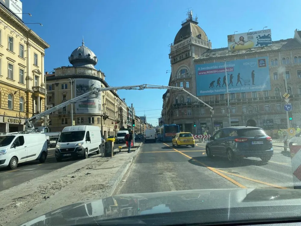 De péntek délelőtt az egyik munkagépet végre bevetették, és ettől néhány arra araszoló autós frászt is kapott. A munkakar ugyanis átível a sávok felett, így a buszoknak és az autóknak alatta kell áthaladniuk.