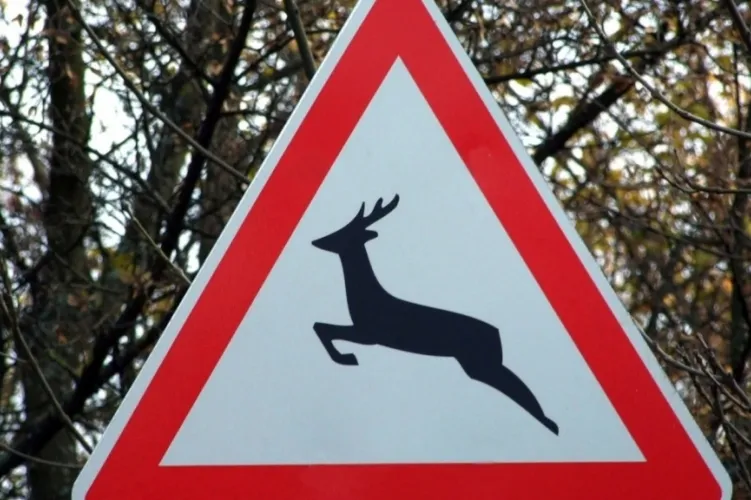 A vadveszélyes útszakaszokra figyelmeztető tábla hívja fel a figyelmet. Ha ilyen táblát látunk, ajánlott figyelmesebben és lassabban közlekedni, főleg pirkadatkor és kora este.