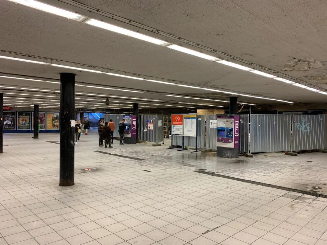 Az életveszélyességig lepukkant a Corvin-negyed aluljárója. A burkolat hiányos, a lefolyókat nem tisztítják, így az esővíz folyik a kövön, de a plafonból is csöpög a víz egy beázás miatt. Az ázás alatt pont egy jegyautomata van...