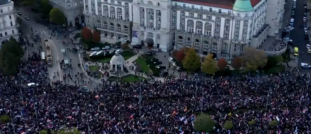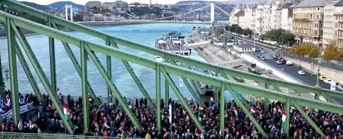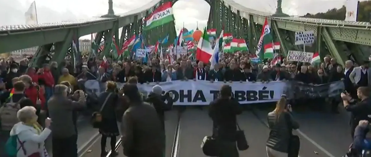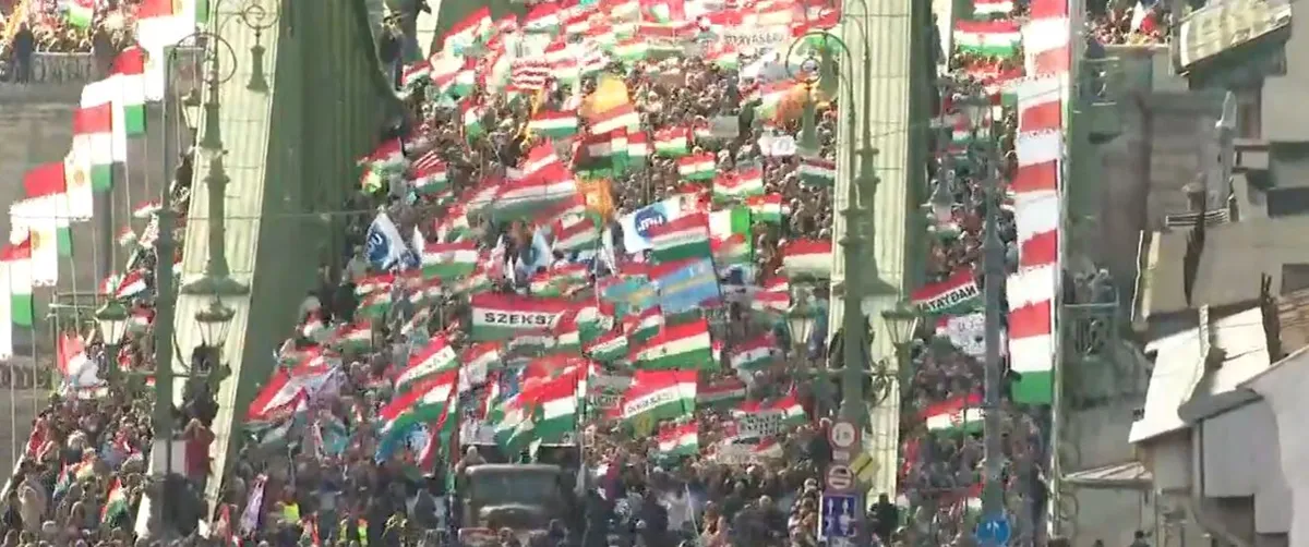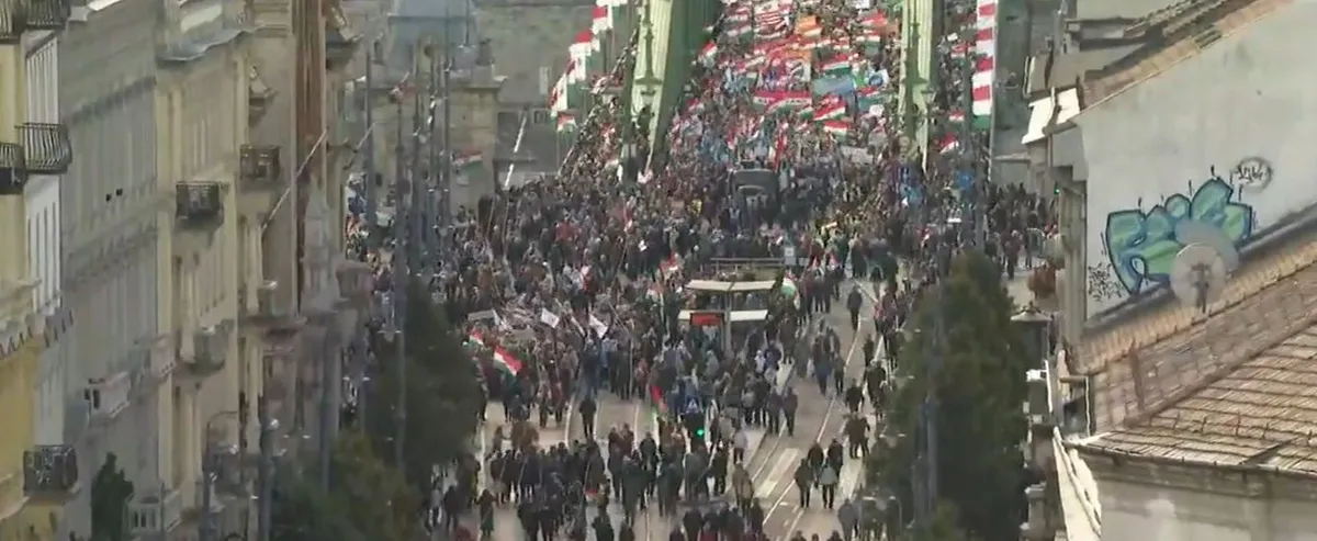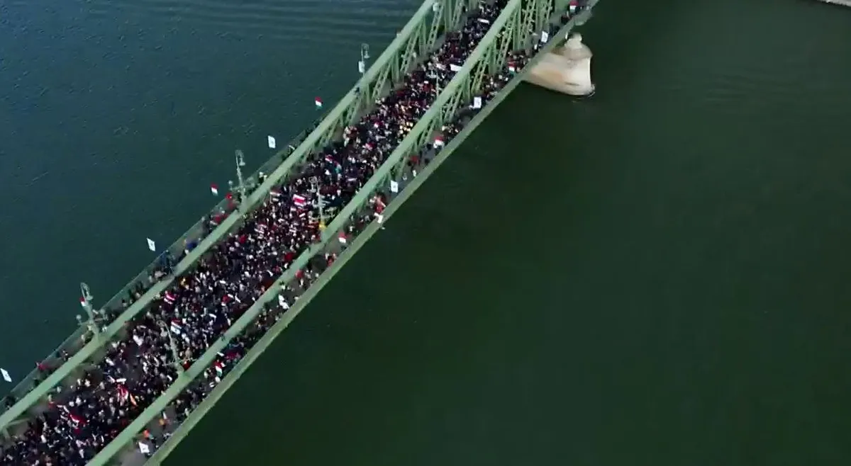 A menet elindult, a Szabadság hídnál tartanak, de olyan sokan vannak, hogy a Műegyetem előtt még csak mozdulni se tudtak az emberek. A tömeg vége a Petőfi hídnál áll.