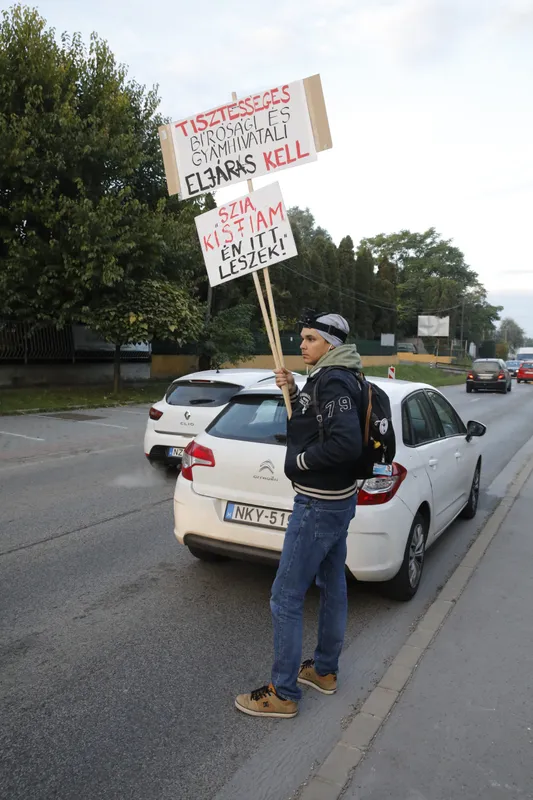 „Szia, kisfiam, én itt leszek” feliratú, házilag barkácsolt táblájával álldogál egy férfi minden szerdán Pécelen, lezárva akciójával a kis város főútját. Az elkeseredett édesapa így üzen gyermekének, akit nem láthat.