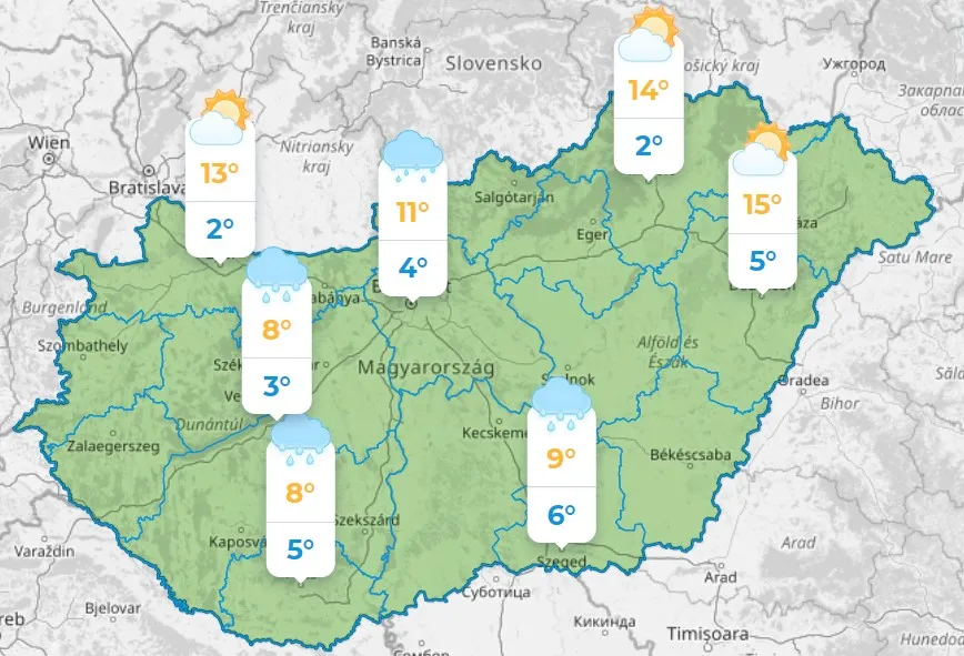 Ezután országszerte többórás napsütés várható, de északnyugaton és a déli határszélen lehetnek felhős körzetek. Eső nem lesz. 12 és 17 fok között alakul a hőmérséklet, úgyhogy kellemes őszi időre számíthatunk és az esernyőt is eltehetjük egy időre.