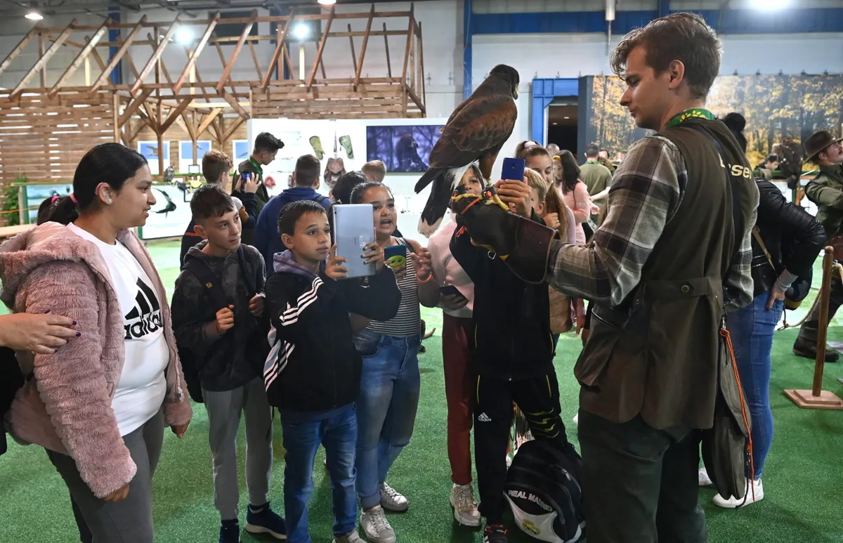 Általános iskolások a Központi Magyar Kiállításon az Egy a Természettel Vadászati és Természeti Világkiállításon a Hungexpo Budapest Kongresszusi és Kiállítási Központban 2021. szeptember 27-én.