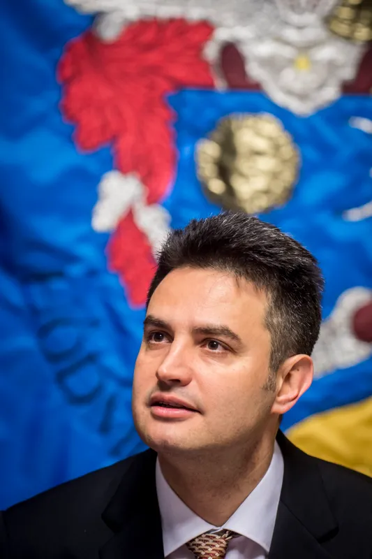 Márki-Zay Péter (függyetlen) polgármester beszél a hódmezõvásárhelyi közgyûlés ülésén a városháza dísztermében 2018. március 19-én.