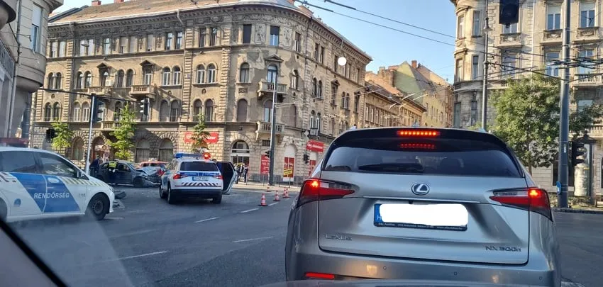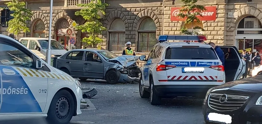 Most érkezett: összeütközött két autó a belvárosban, a rendőrök már a helyszínen