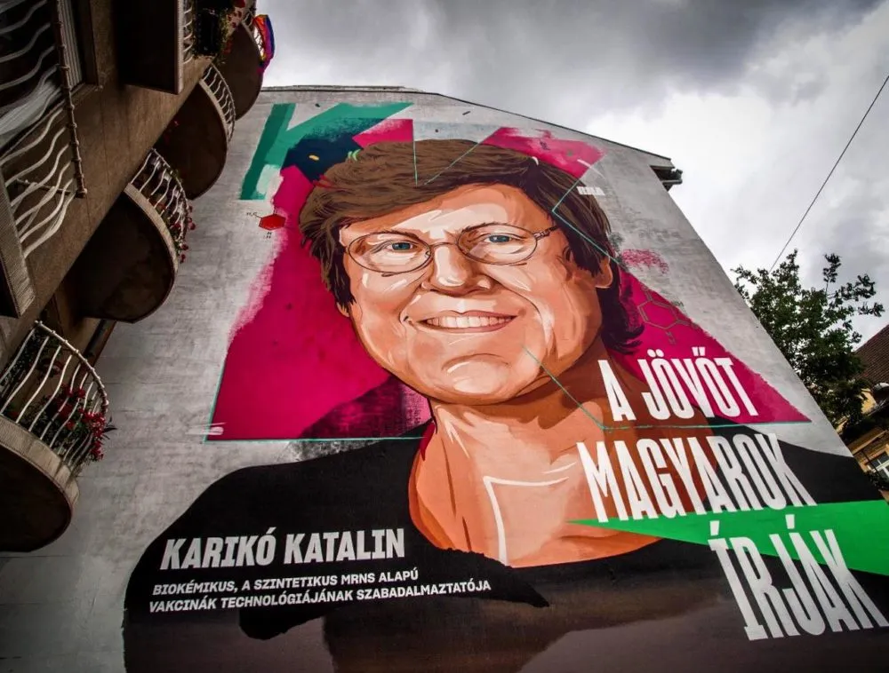 Ismeretlenek összefirkálták Karikó Katalin hatalmas, fővárosi, Krisztina körúti tűzfalfestményét.