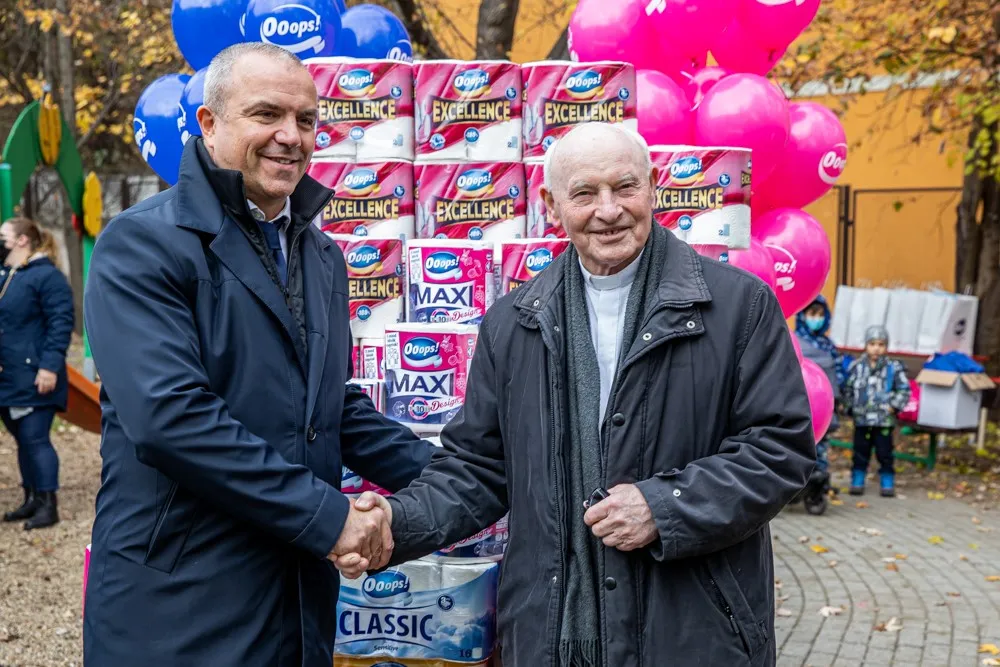 Az adományt Kozma Imre atya, a Magyar Máltai Szeretetszolgálat alapító elnöke és a Betegápoló Irgalmasrend magyarországi vezetője vette át, a Szeretetszolgálat zuglói családok átmeneti otthonában, ahol 30 krízishelyzetbe került család 86 gyermekével talált menedéket. A felajánlott termékekkel – toalettpapírral, papír zsebkendővel, és háztartási papírtörlővel – a Betegápoló Irgalmasrend intézményeit, kórházait és idősotthonait is ellátják.