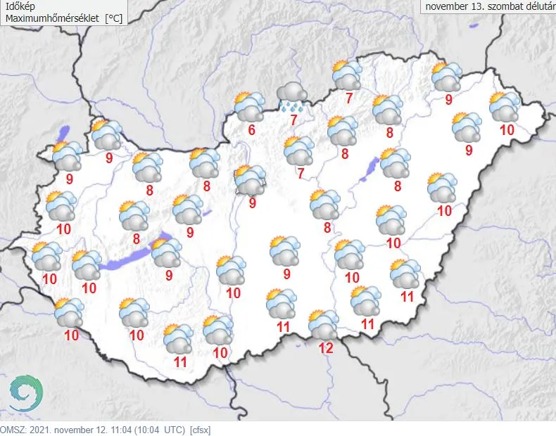 A keleti, főként tiszántúli tájakon viszont már délelőtt előbújhat a nap. Számottevő csapadékra napközben nem kell készülnünk, legfeljebb némi csepergés fordulhat elő a délnyugati, és északkeleti tájakon. Délután délnyugat felől megnövekszik, megvastagszik a felhőzet, de érdemi csapadékra majd csak estétől, akkor is nyugaton számíthatunk. A mérsékelt délies szél a Dunántúlon nagyobb területen is megélénkül. A legmagasabb nappali hőmérséklet a tartósabban borult részeken 6 és 10 fok között várható, míg a naposabb tiszántúli régióban 13 fokig emelkedhet a hőmérséklet csúcsértéke.