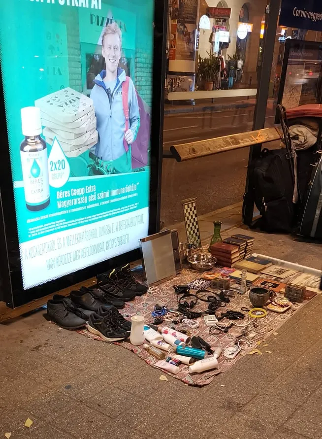 A Ripost egy hihetetlen képet kapott az egyik olvasójától. A Corvin-negyed egyik megállójában valaki közvetlenül a várakozók mellé pakolta ki termékeit, hogy ott próbálja meg értékesíteni őket.
