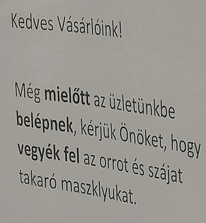 Hogy minden vásárló értesüljön az új szabályokról, arról a boltoknak egyenként is gondoskodnia kell. Így tett egy budapesti üzlet személyzete is, akik a következő kiírással csaltak mosolyt vásárlóik arcára: