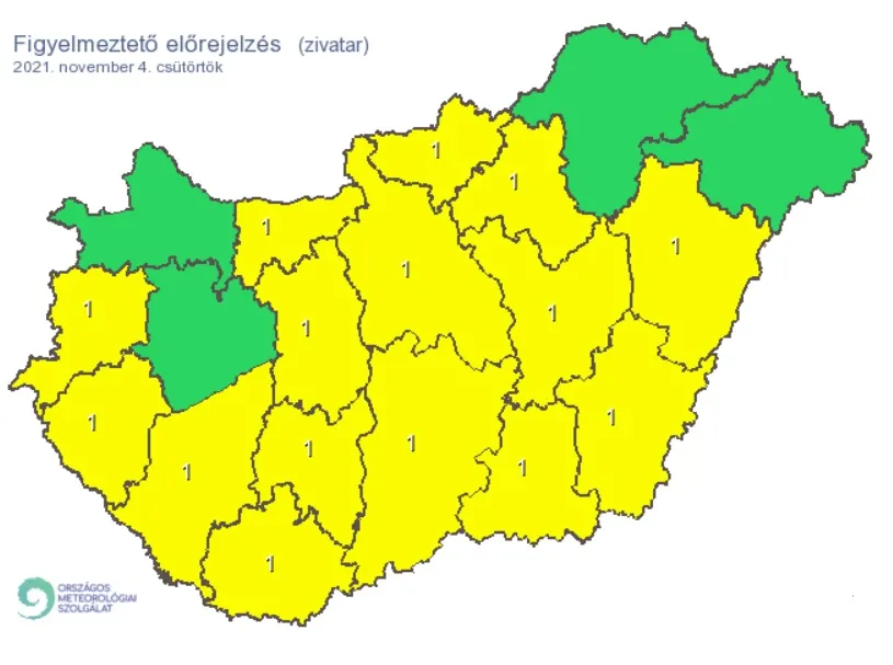 A meteorológusok riasztást adtak ki zivatarok miatt. Az elsődleges veszélyforrást a villámlás jelenti, emellett esetenként szélerősödés, jégeső előfordulhat!