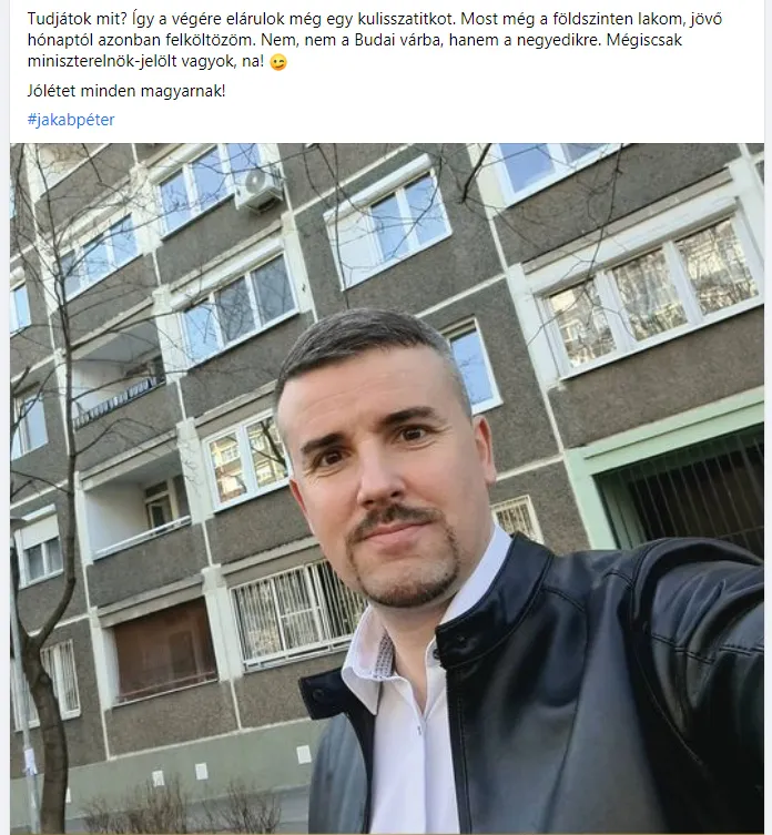 Jakab mindeközben, hogy összezavarja a közvéleményt, afféle elterelő hadműveletként egy posztban az állította, hogy rövidesen egy Etele utcai, 4. emeleti lakásba költözik. Ebből azonban semmi sem volt igaz.