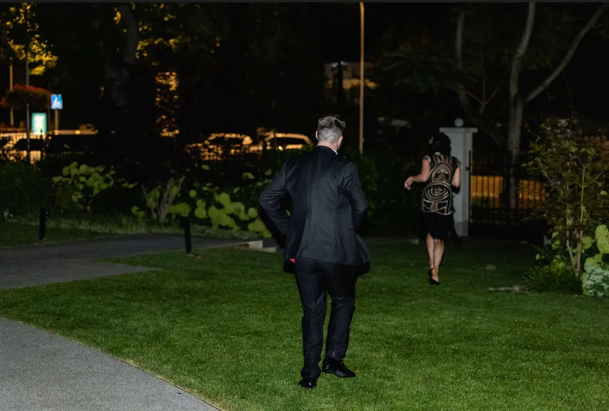 A zavart tekintetű Cseh Katalin az este egy pontján drága esküvői helyszínének biztonsági őrökkel védett kertjébe is kitévedt. A Momentum politikusa furcsán bolyongva, nevetgélve, meg-megbotolva, kerítésbe kapaszkodva viháncolt a fák és bokrok között. Arckifejezései arról árulkodnak, hogy ekkor már alig tudta, mit csinál. A Bors információi szerint a jelenlévők is csak nyugtatni próbálták a féktelenül mulatozó menyasszonyt, akit még a vakuk villanásai sem zavartak meg, hajnalig folytatta botrányos viselkedését.