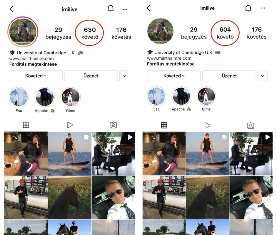 26 követőjét nyilvánította egyik napról a másikra gyanúsnak, s azonnal letiltotta őket. A Metropol úgy értesült, hogy komoly személyes konfliktusok is adódtak a gyanúsításokból, miután Mártha Imre magánnyomozót fogadott, hogy kiderítse, kik buktatták le.