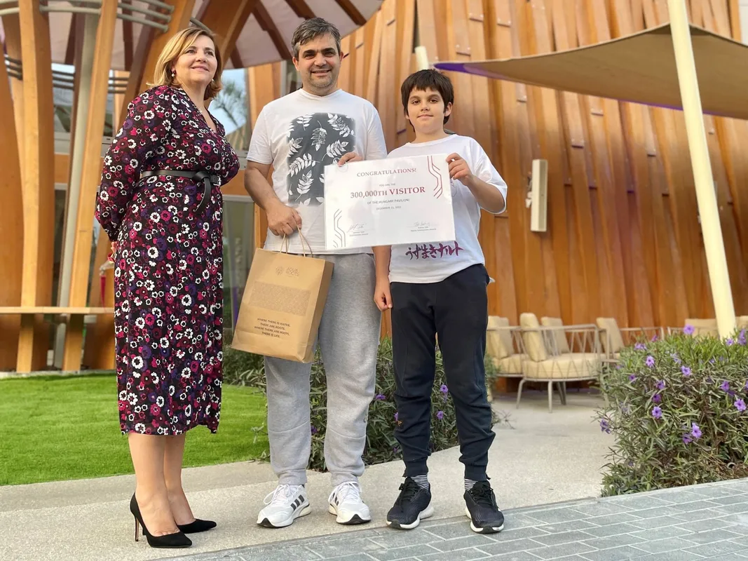 A Dubaji Világkiállítás Magyar Pavilonjában a háromszázezredik látogató egy magyar vendég volt családjával, akik több mint 19 éve élnek Dubajban – közölte a Magyar Turisztikai Ügynökség.