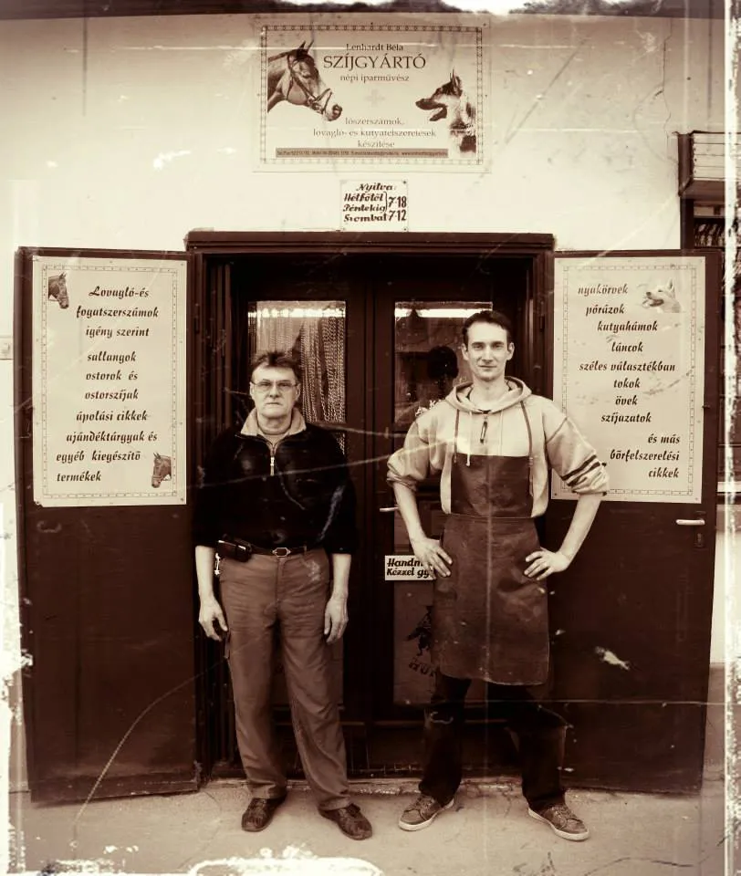 „Ugyanúgy készítünk felszereléseket lovak és kutyák számára, mint akár fegyvertokokat, öveket, szíjazatokat, óraszíjakat, karikás ostorokat, vagy éppen bőr kulcstartókat” – ecsetelte. Édesapja, idősebb Lenhardt Béla azt is elmondta: gyermeke kvázi az inasaként tanulta ki a szakma csínját-bínját, erre ugyanis ma már nem létezik szakiskola.