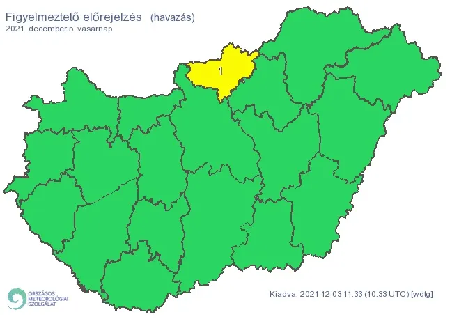 Nógrád megyére elsőfokú figyelmeztetést adtak ki, ugyanis vasárnap 12 óra leforgása alatt több mint 5 centi hó is hullhat majd. Sajnos az ország többi részén még várni kell a havazásra.