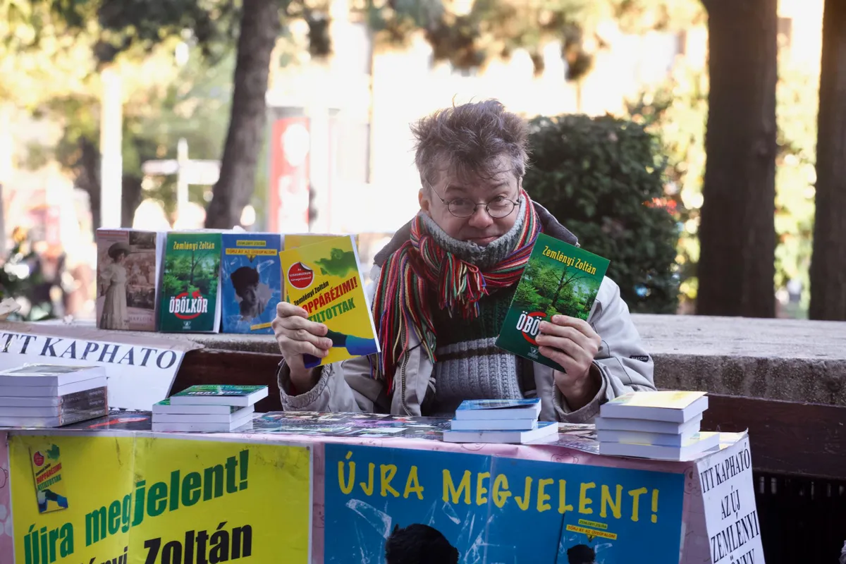 Hoppárézimi, vagyis polgári nevén Zemlényi Zoltán története sokak számára ismerős. 1985-ben, 17 évesen súlyos balesetet szenvedett az Oktogonnál, újra kellett tanulnia járni és beszélni. Életéről könyvet írt Hoppárézimi címmel, melyből színdarab is született. Számtalan tévés szereplés és interjú után hosszú évekre eltűnt a nyilvánosság elől. Most azonban nap mint nap a Deák téren dedikál.