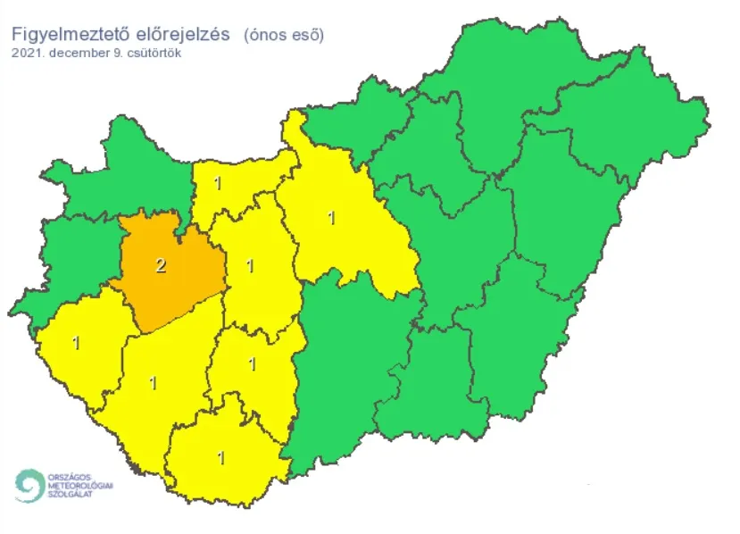 Nagy mennyiségű csapadék van kilátásban kiadós havazással és ónos esővel. Nyolc megyében adtak ki figyelmeztetést, mutatjuk, hol.