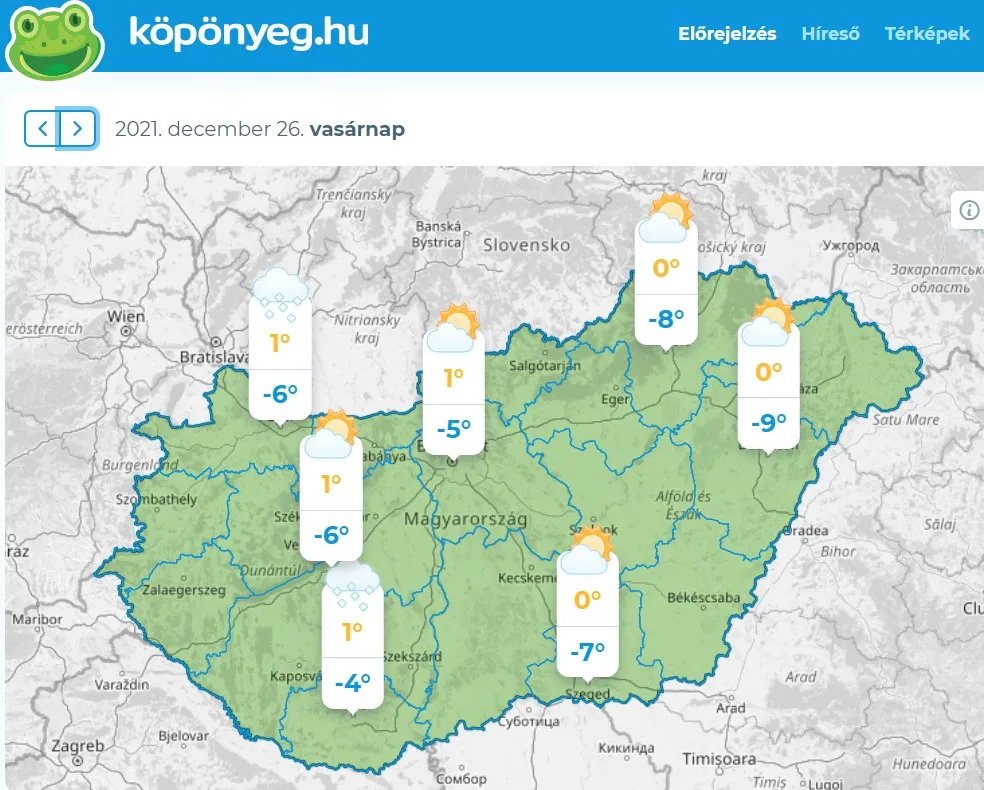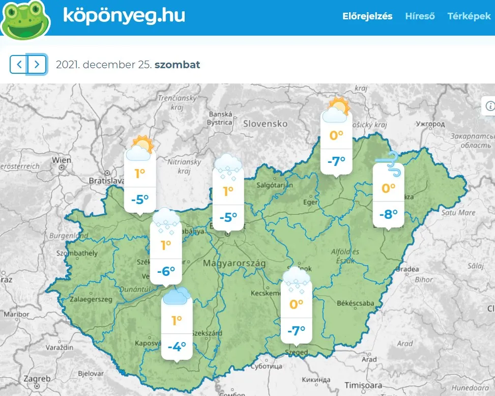 December 25-én Pest megyében és Budapesten, a Balaton környékén, valamint a Dél-Alföldön várható hó – a köpönyeg.hu előrejelzése szerint.