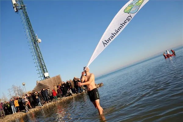 Immár nyolcadik alkalommal rendezte meg az Ábrahámhegy SE a különleges szilveszteri fürdőzést, amihez bátor jelentkezők csatlakoztak.