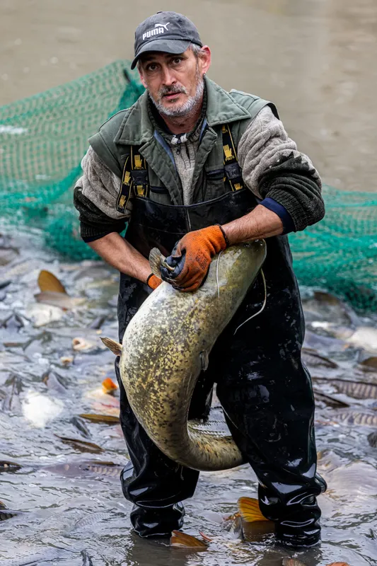 „Ami ide kerül a hálóba, ennek a 80 százaléka a karácsonyi halellátáshoz megy. Ez a hal különösen finom, a nagyobbak, a 8-10 kilósak vagy annál is nagyobbak mennek a horgásztavakba. A becsülendő zsákmányhoz, a nagy testű halakhoz innen lehet legálisan hozzá jutni. Ezeket a halakat eladjuk, hadd élvezzék a horgászok is” – mondja Lévai Ferenc.