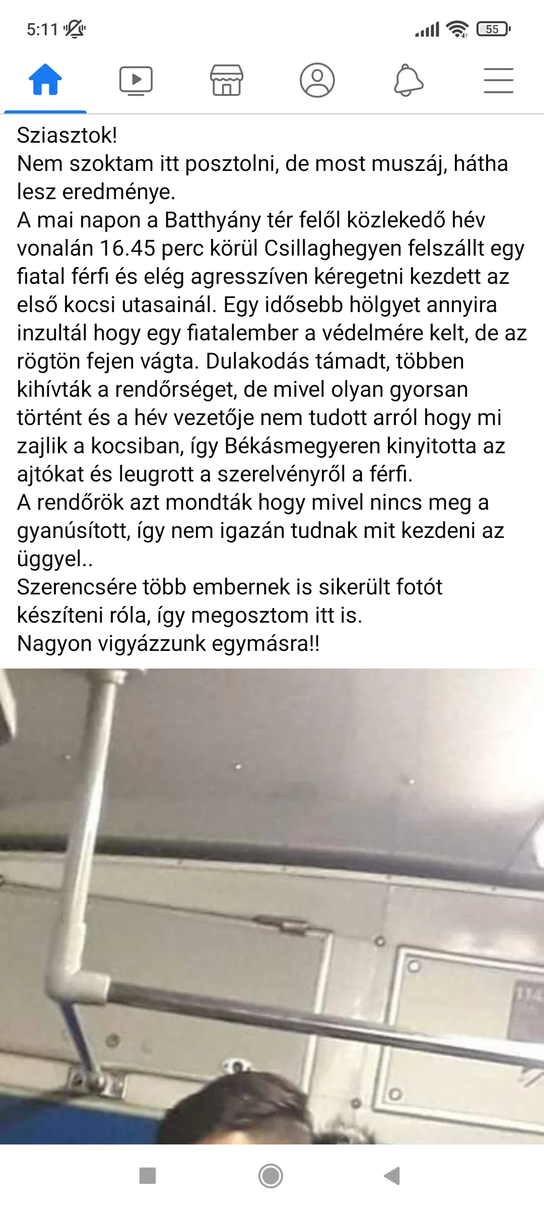 A megdöbbentő eset úgy kezdődött, hogy egy hajléktalannak tűnő férfi felszállt Csillaghegy megállónál a HÉV-re, majd az első kocsiban erőszakosan kéregetni kezdett egy idősebb hölgytől.