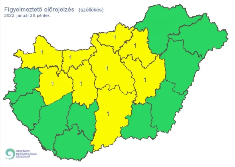 Péntek reggelre a délnyugati és az északkeleti tájak kivételével nagy területen megerősödik az északnyugati szél, melyet napközben elsősorban az Észak-Dunántúlon, a főváros térségében és az Alföld északnyugati részén viharos (60-80 km/h) széllökések kísérnek. A péntek esti órákra némileg veszít erejéből a légmozgás.