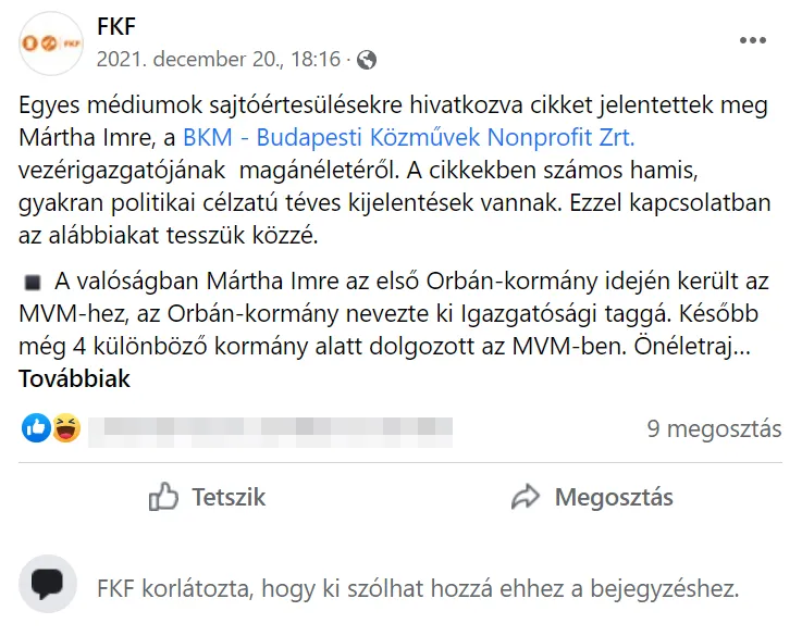 Az FKF- és FŐTÁV-oldalon is Mártha magánügyeiben posztolgatnak